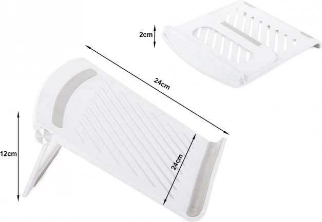 Protuklizne gumene podloge osiguravaju stabilno postavljanje stalka na površini i sprječavaju neželjeno klizanje prijenosnika. Zahvaljujući laganoj konstrukciji i mogućnosti sklapanja na ravno, stalak je idealan za putovanja i mobilne korisnike.