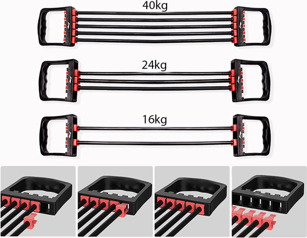 Univerzalni ekspanzer s 5 odvojivih otpornih guma i ergonomskim ručkama za učinkovito jačanje, istezanje i rehabilitaciju. Nudi podesivu napetost, jednostavnu upotrebu i dug vijek trajanja zahvaljujući kvalitetnim materijalima.
