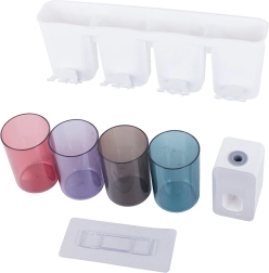 Dovedite red u kupaonicu s pametnim organizatorom koji kombinira držač za četkice, dozator paste za zube i spremne pretince za svakodnevne potrepštine. U kompletu su 4 plastične čaše (300 ml) za udobnu uporabu cijele obitelji. Ugradnja je brza i čista – dovoljno je pričvrstiti na zid pomoću jake prijanjaljke, bez bušenja.