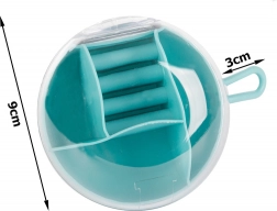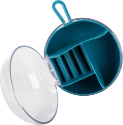 Zahvaljujući izvadivom središnjem organizatoru dio pretinaca možete koristiti i zasebno. Kompaktne dimenzije promjer 9 cm i visina 6 cm čine ga idealnim izborom za torbicu, kofer i toaletni stolić. Dostupne boje: ružičasta, tamnoplava, zelena.