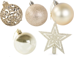 Set uključuje ukrase u raznim veličinama i uzorcima koji će vašem božićnom drvetu dati profinjen izgled.