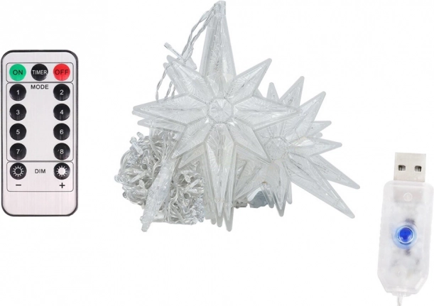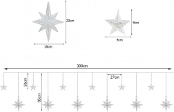 Zavjesa sadrži 6 velikih zvijezda i 6 manjih zvijezda, s ukupnom dužinom 5 m. Možete odabrati između 8 različitih svjetlosnih programa za stvaranje željene atmosfere koristeći priloženi dalkinski upravljač.