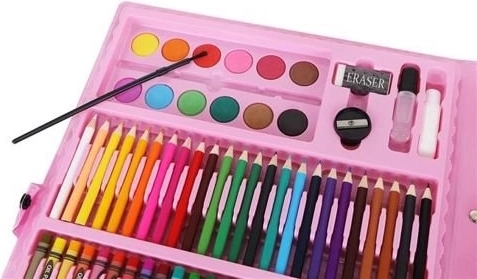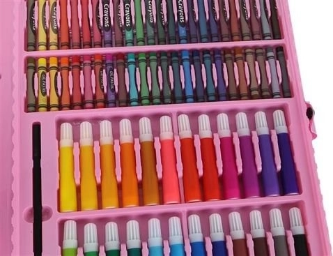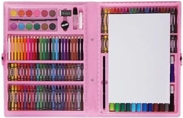 Kompletan likovni set u praktičnom ružičastom kovčežiću s 168 dijelovima za male i velike kreativce. U njemu ćete pronaći bojice, flomastere, voštane pastele, uljne pastele, akvarele te korisne dodatke uključujući papire i paletu. Zahvaljujući preglednim pretincima i ručki idealan je za kod kuće, u školu i na putovanja.