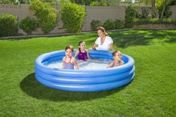 Napuhujući dječji bazen s dimenzijom 183x33 cm lako će stati u vaš vrt ili terasu i jednostavno ga je napuniti vodom. Zahvaljujući tri kružna sloja bazen je čvrst i stabilan, idealan za sigurnu igru vaših mališana. Bazen je opremljen setom za popravak, koji osigurava brzi popravak eventualnih manjih oštećenja.