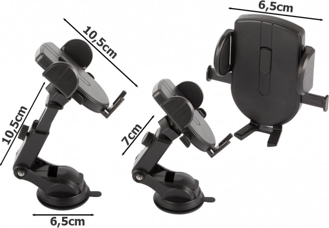 Univerzalni držač za auto s snažnom vakuumskom čašicom za sigurno postavljanje na vjetrobransko staklo ili kontrolnu ploču. Njegova jednostavna montaža i podesiv kut pružaju maksimalnu udobnost pri korištenju.