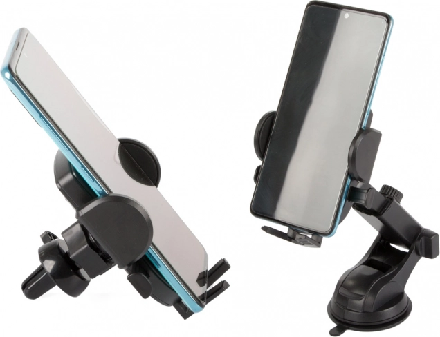 Držač za telefon za auto dizajniran je tako da pruža sigurno i udobno korištenje vašeg mobilnog uređaja tijekom vožnje. Jednostavno se montira na vjetrobransko staklo ili kontrolnu ploču vozila, a zahvaljujući sustavu podesivih ručica držač je prikladan za većinu telefona i GPS uređaja.