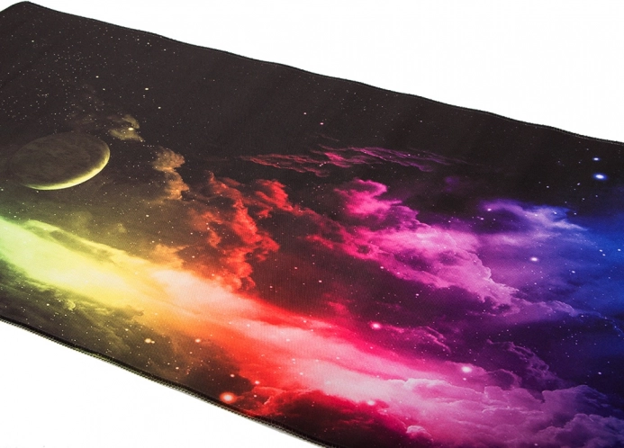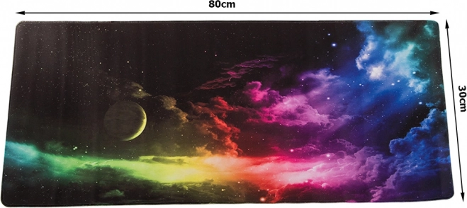 Stilna gaming podloga za miš u dimenziji XXL 80 × 30 cm proširuje radnu površinu, olakšava upravljanje i ukrašava stol svemirskim motivom. Glatka tekstilna površina jamči precizno praćenje, protuklizna gumena baza čvrsto drži na mjestu, a vodootporna obrada s obrubljenim rubovima osigurava dug vijek trajanja.