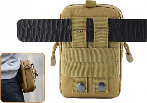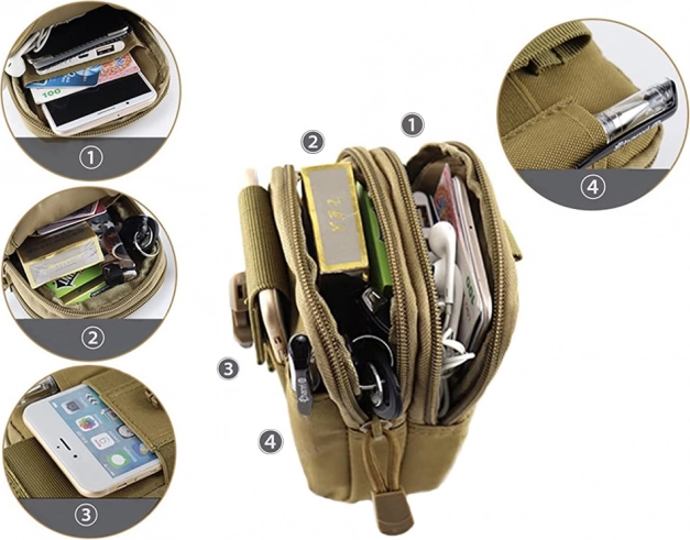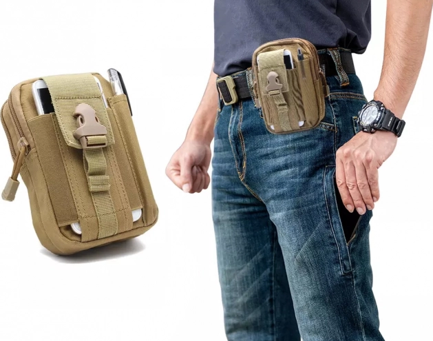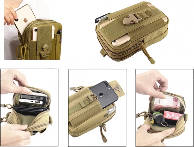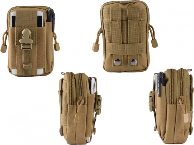 Kompaktna taktička torbica za pojas sa sustavom MOLLE idealna je za planinarenje, kampiranje i svakodnevno nošenje. Nudi 2 glavna pretinca s patentnim zatvaračem, više džepova za preglednu organizaciju te prednji držač za telefon s podesivom trakom. Izdržljiv, vodootporan materijal i čvrsti šavovi štite vaše stvari, dok podstavljena unutrašnjost ublažava udarce. Može se pričvrstiti na pojas, ruksak ili karabiner.