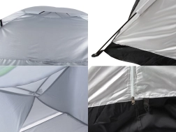 Gornji ventilacijski otvor može se po potrebi prekriti za vrijeme kiše. Ojačano dno štiti od vlage iz tla, a šator se lako učvršćuje pomoću klinova. Nakon sklapanja zauzima minimalno mjesta, a zahvaljujući prijenosnoj torbi s ručkom lako ga je nositi.