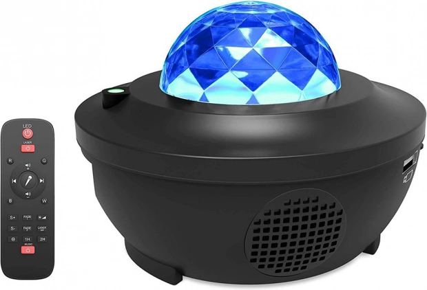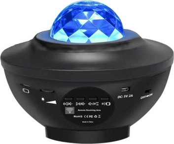 Uređaj ima ugrađeni Bluetooth zvučnik (podrška i za USB flash pogon), pa lako spajate svjetlo s glazbom. Pomoću daljinskog upravljača mijenjate modove, pjesme i postavljate timer na 1–2 sata. Projektor se može postaviti ili objesiti na zid/strop, a zahvaljujući protukliznim nožicama stabilno stoji na namještaju.
