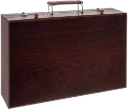 Zahvaljujući praktičnoj drvenoj kutiji s ručkom i sigurnim zatvaračem, prenošenje ovog seta je lako i udobno. Kroz dobro organizirane pregrade uvijek ćete imati jednostavan pristup pojedinim alatima, koji će ostati na svom mjestu i uvijek pregledno organizirani.