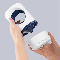 Odvojiva sabirna posuda omogućuje brzo i higijensko čišćenje bez izravnog kontakta s insektima. USB napajanje pruža fleksibilnost postavljanja – dovoljna je power banka, adapter ili USB priključak. Elegantni dizajn u bijeloj i tamnoplavoj boji uklapa se u svaki interijer.