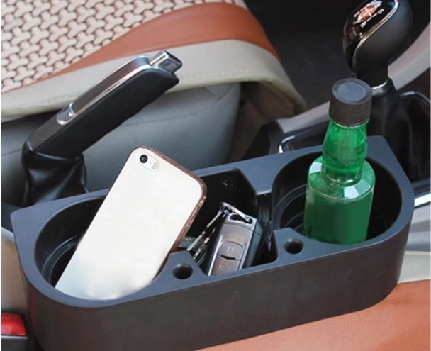Praktični organizator za auto pomaže spriječiti nered i ometanje tijekom vožnje. Zahvaljujući pametnom rasporedu pretinaca, prima boce, čaše, limenke, telefon, kovanice, ključeve i olovke. Ugradnja traje svega nekoliko sekundi – jednostavno ga umetnite u prostor između sjedala i središnjeg tunela.