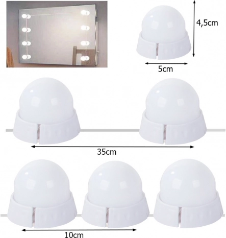 Svjetla se lako postavljaju, a duljina kabela je jednostavno podesiva, tako da ih možete prilagoditi konkretnom ogledalu. Idealno osvjetljuju lice za savršeno šminkanje, a ujedno su i stilska dekoracija za svaku prostoriju.