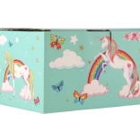 Čvrst karton s metalnim zatvaranjem i šarkama osigurava dug vijek trajanja. Pastelno zeleni motivi duge, zvjezdica i leptira lijepo će ukrasiti svaku dječju sobu.