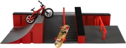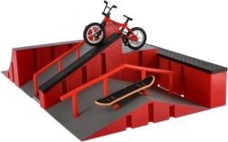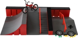 Ovaj detaljno izrađen prstni skatepark omogućuje ti trenirati i pokazivati trikove kao u pravom parku. Različiti dijelovi prepreka – rampa, stepenice i ograda – dizajnirani su za glatke prijelaze i kombinacije trikova na skateboardu i mini BMX-u.
