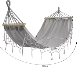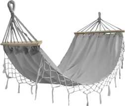 Viseća mreža GARDLOV spaja prirodan izgled s visokom izdržljivošću. Ugodan pamuk s primjesom poliestera mekan je na dodir, dobro diše i odolijeva svakodnevnoj uporabi. Drvene razupore (80 cm) održavaju površinu mreže razapetom, pa možete udobno ležati ili sjediti.
