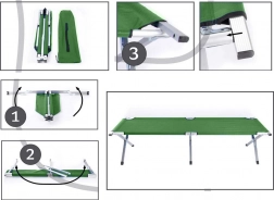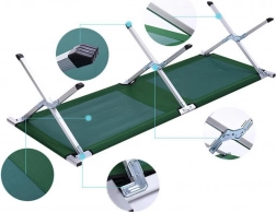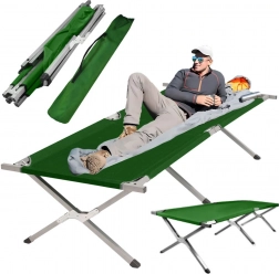 Uživajte u komforu i na putu. Ovaj zeleni sklopivi taborni krevet kombinira stabilan metalni okvir s izdržljivim poliesterskim navlakom koji je ugodan na dodir i lako se čisti. Zahvaljujući promišljenom X-okviru ležaljka je čvrsta i pouzdana, a pritom zadržava malu težinu i izvrsnu kompaktност.